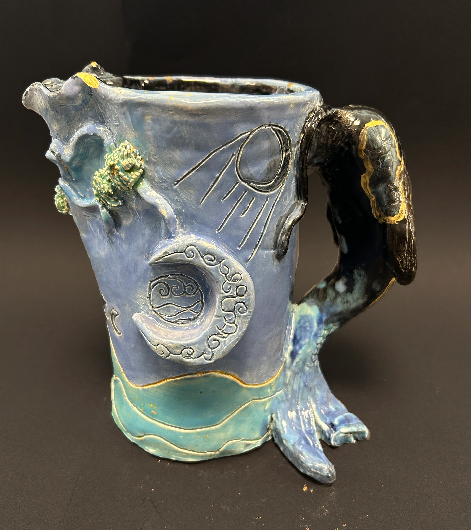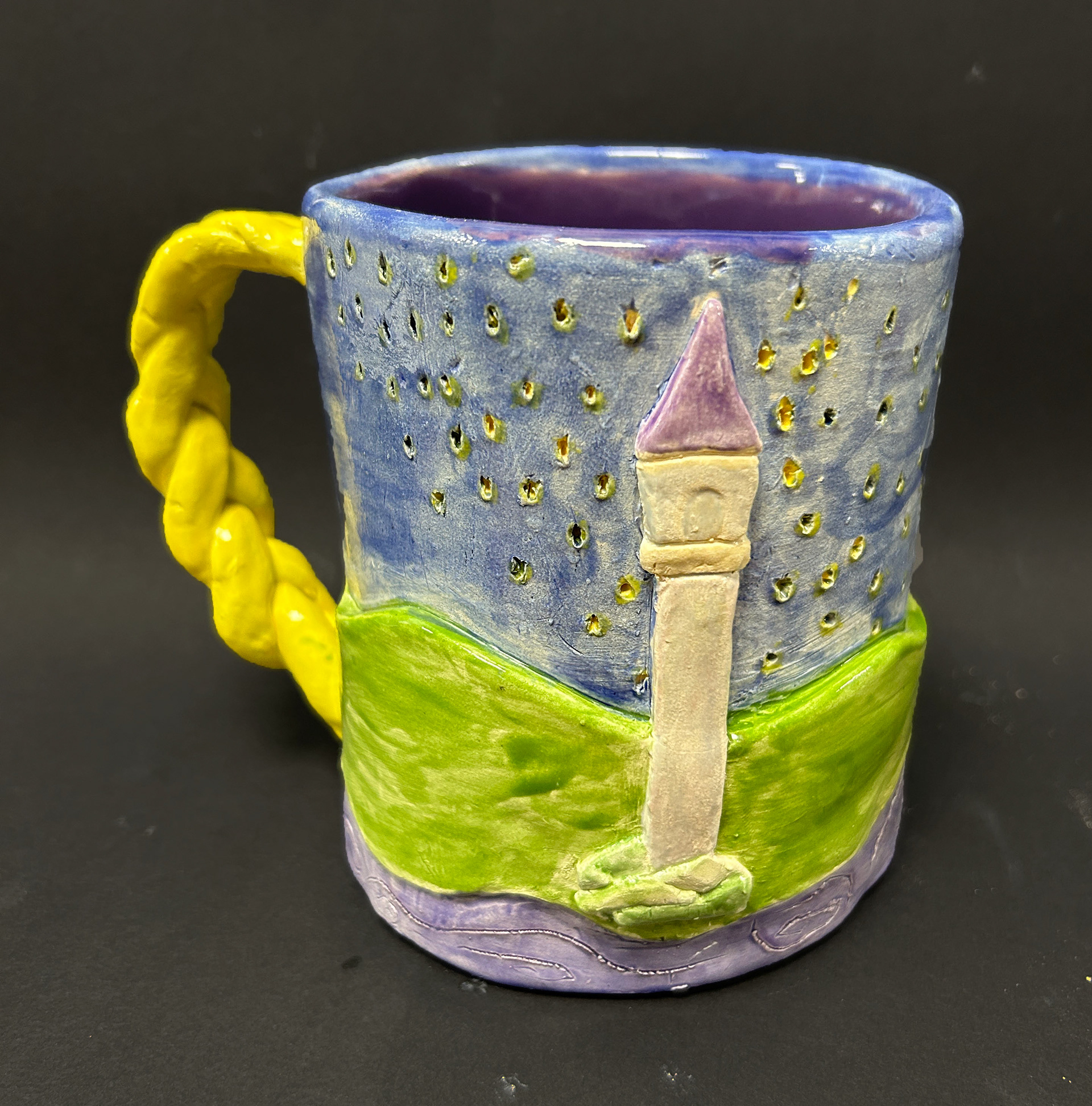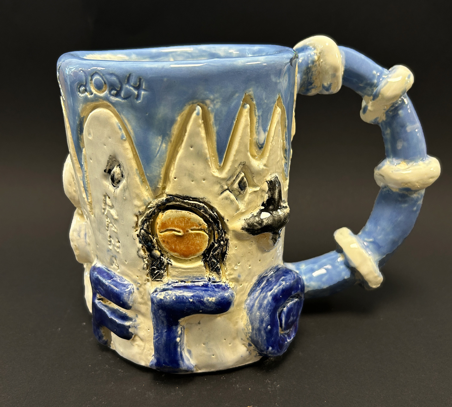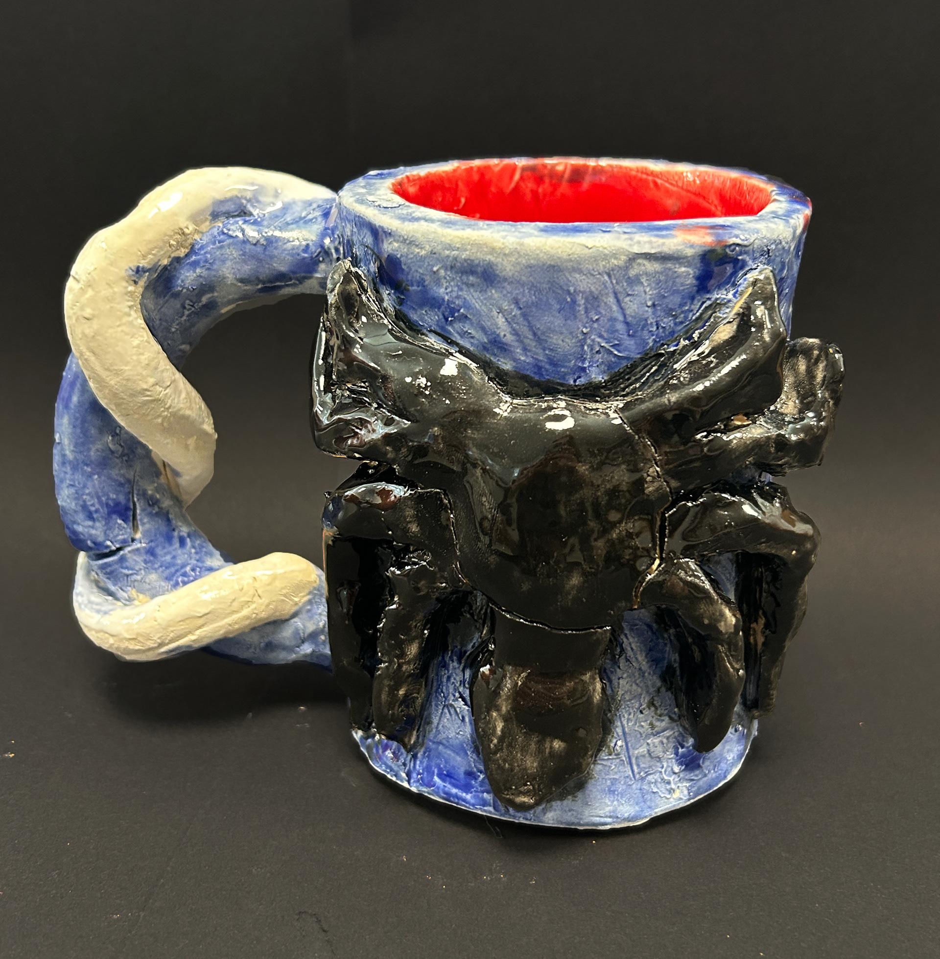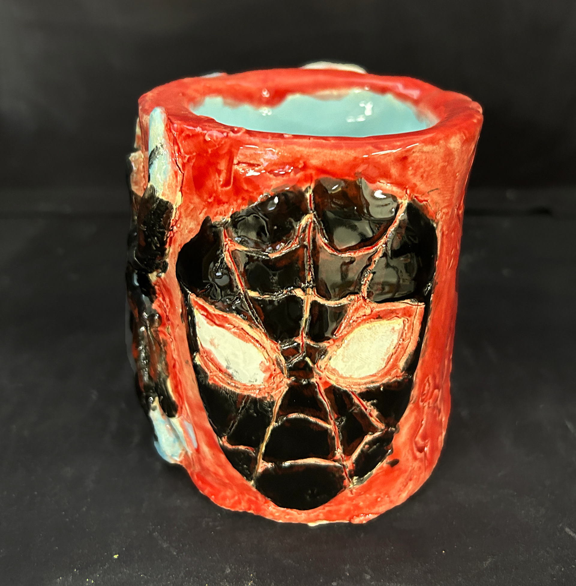Students constructed ceramic mugs using slab, coil, and pinch hand-building techniques. Prior to working on their mugs students had to pick a movie for inspiration and complete a sketch.