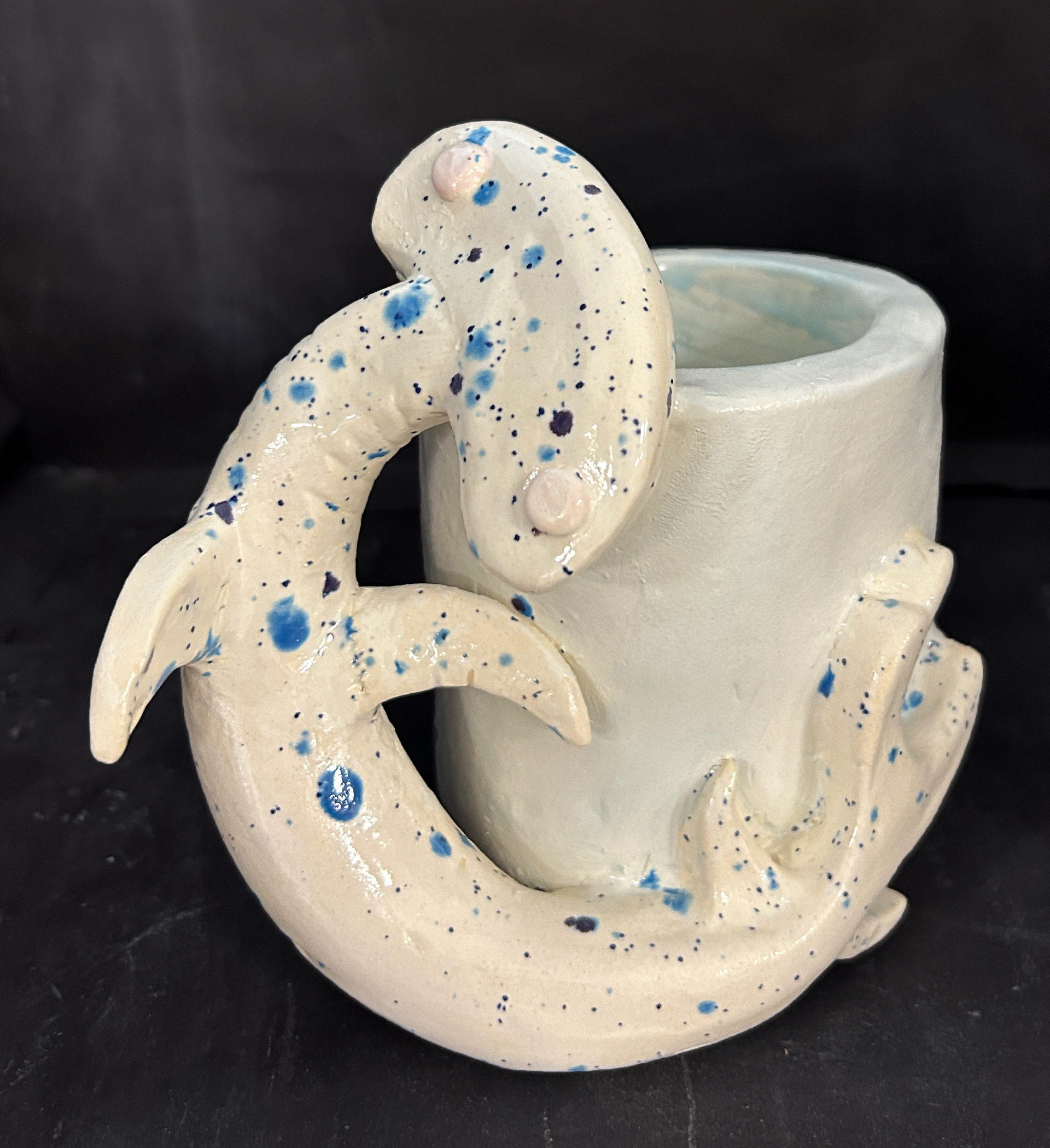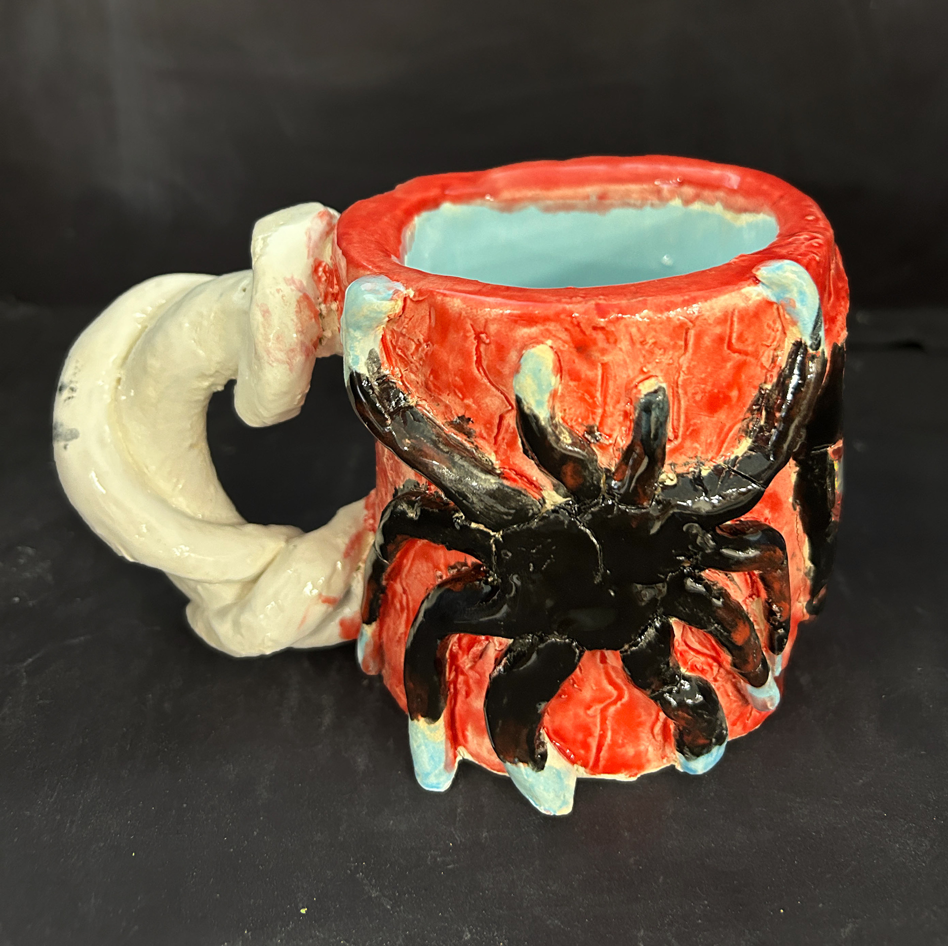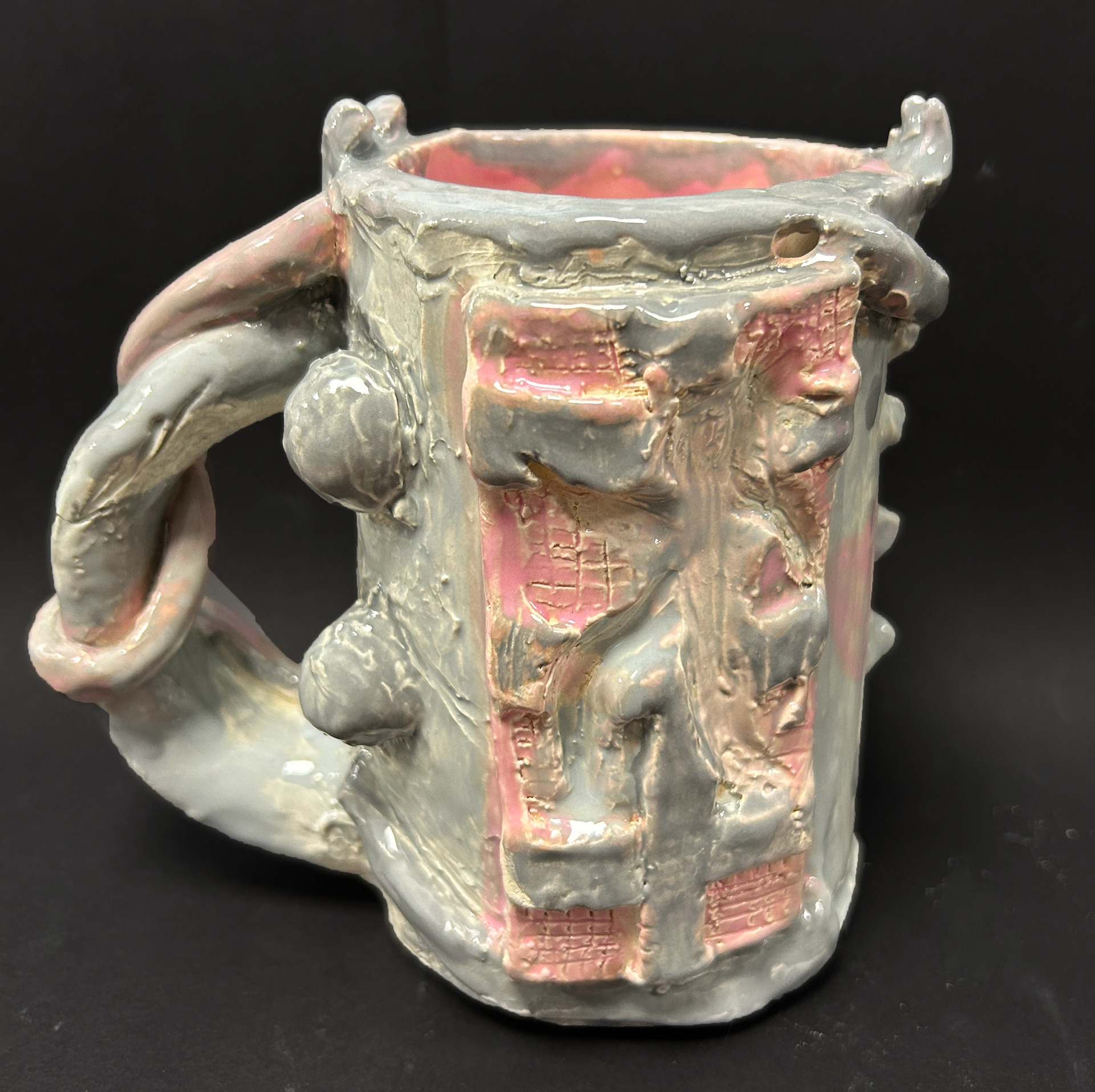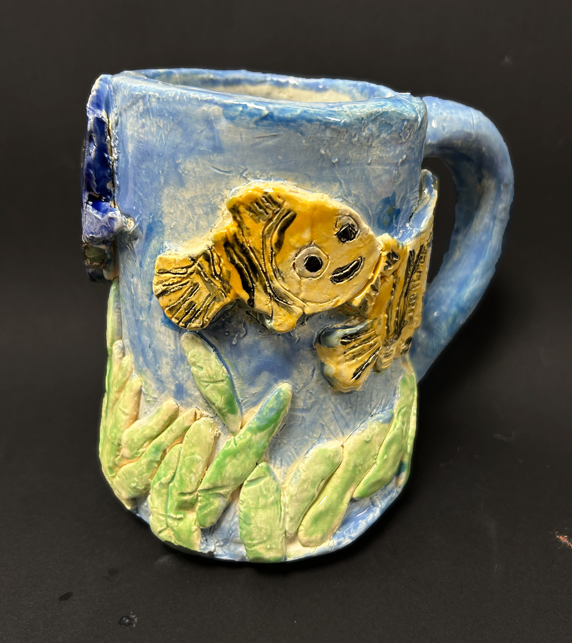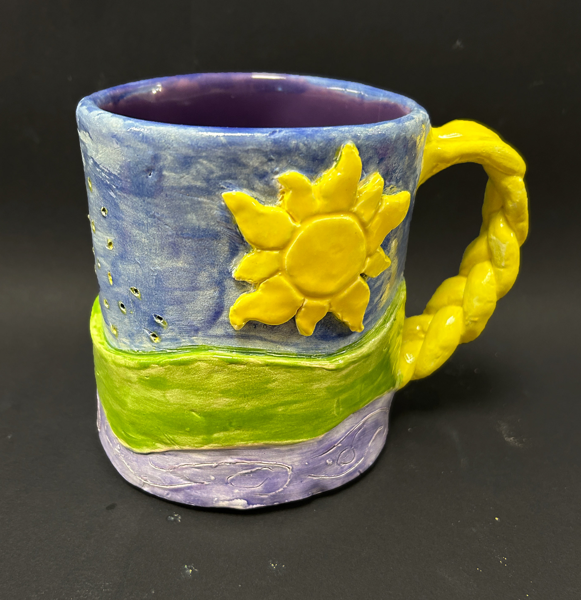 Students constructed ceramic mugs using slab, coil, and pinch hand-building techniques. Prior to working on their mugs students had to pick a movie for inspiration and complete a sketch.