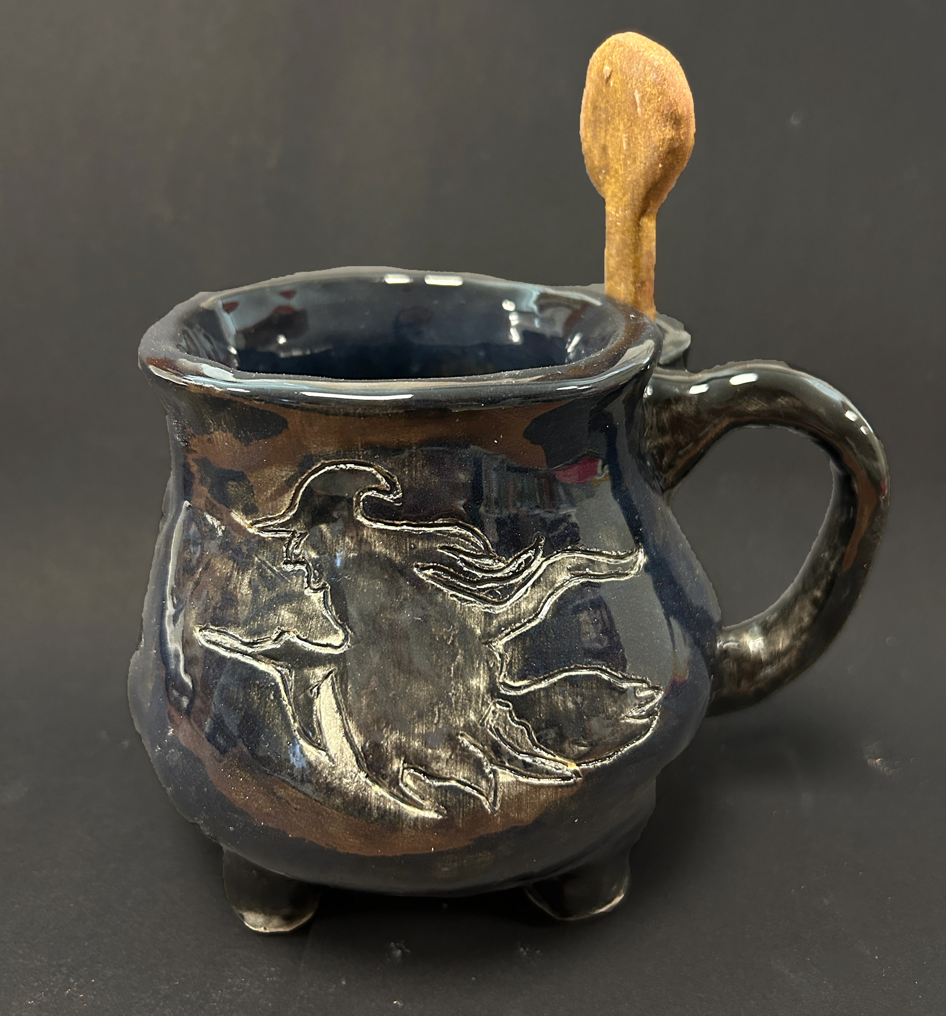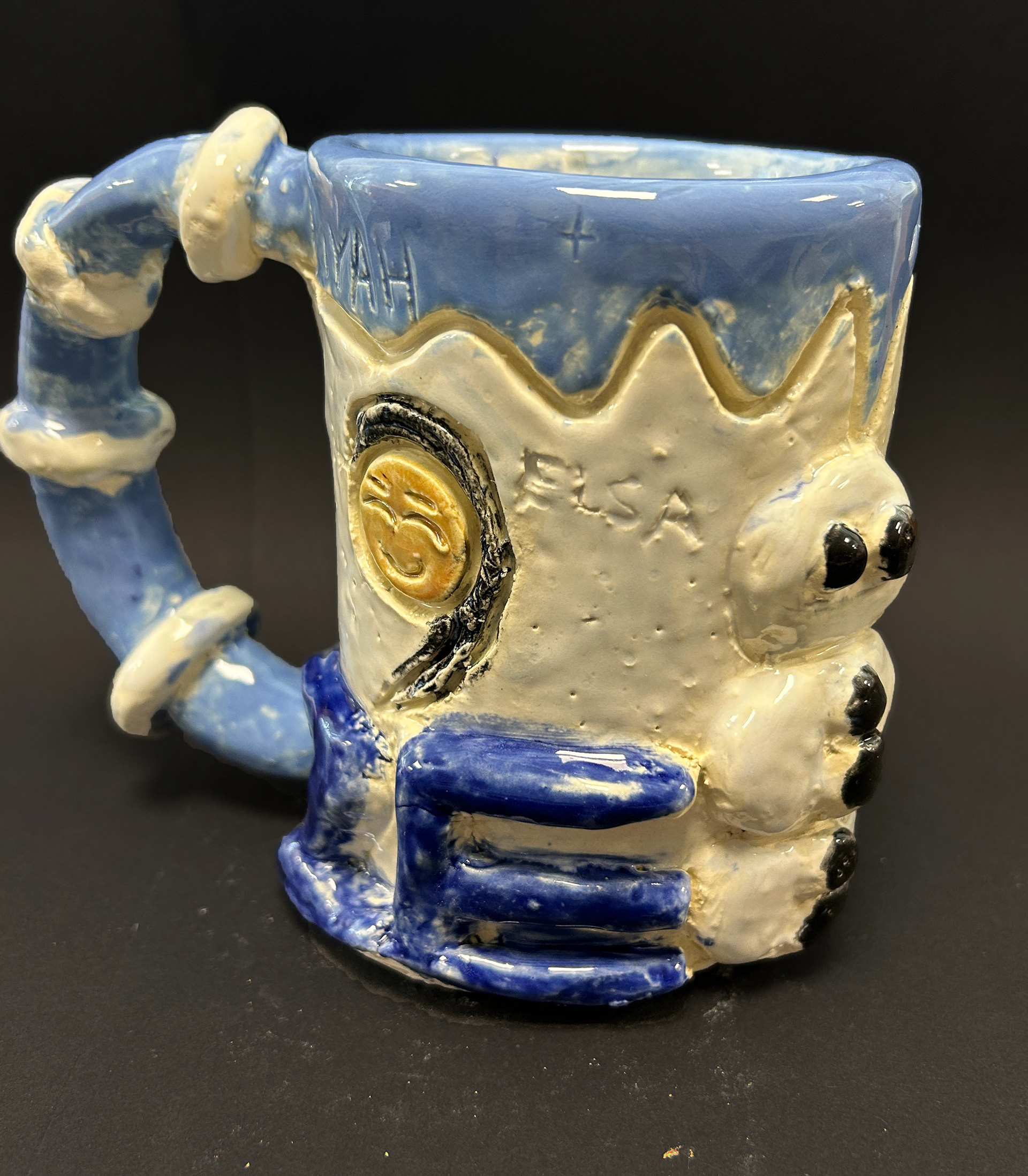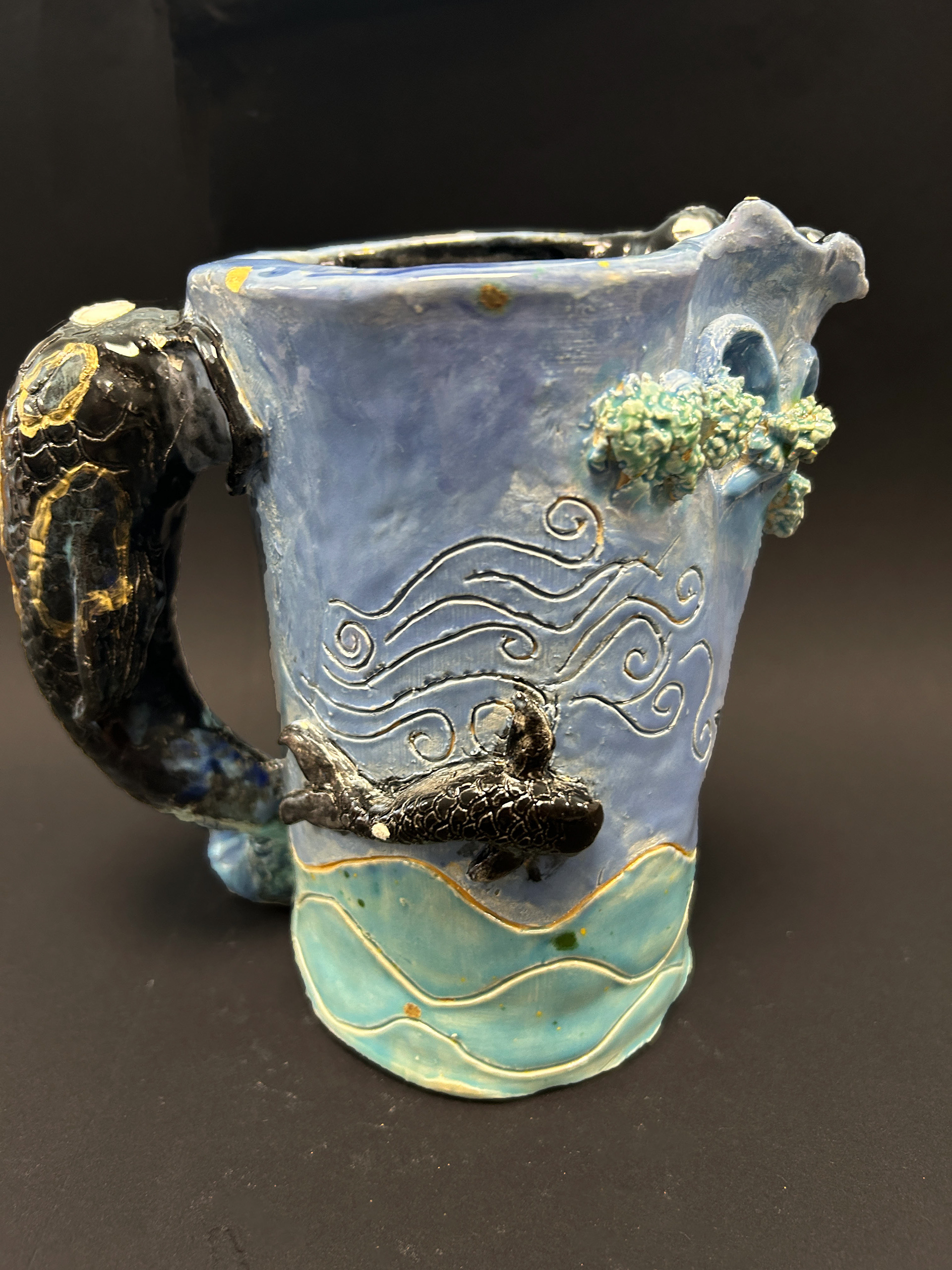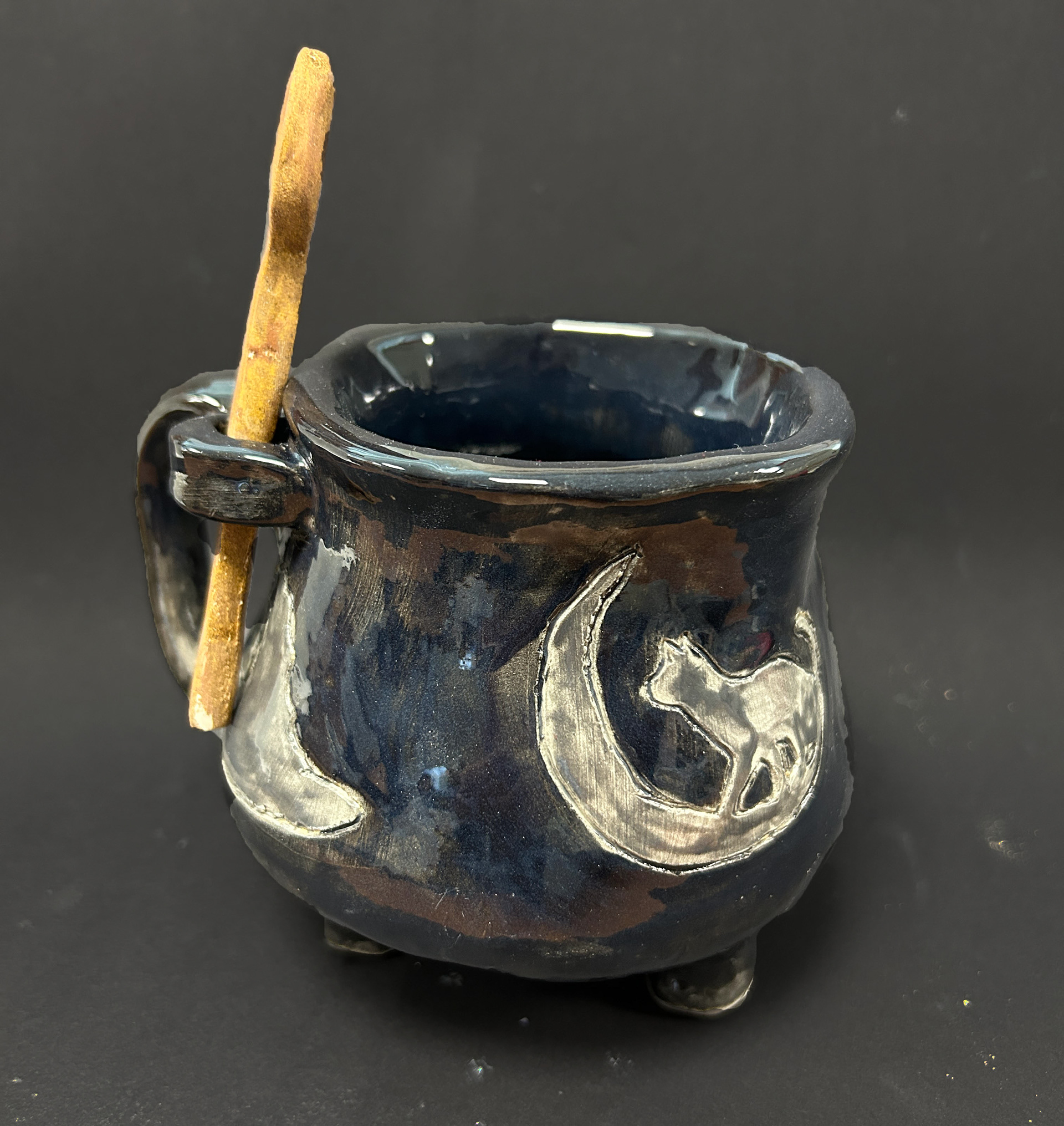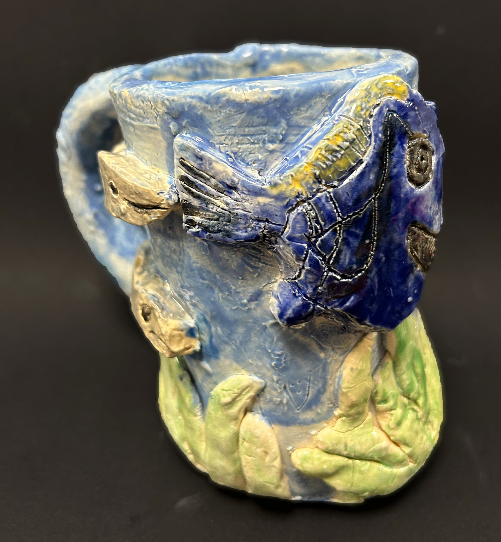 Students constructed ceramic mugs using slab, coil, and pinch hand-building techniques. Prior to working on their mugs students had to pick a movie for inspiration and complete a sketch.